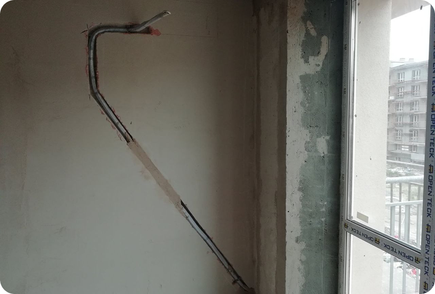 Также этот вид монтажа актуален для зданий на которых запрещено размещать коммуникации на фасадах. В основном это новострои, элитные ЖК и фасады зданий центральных улиц.